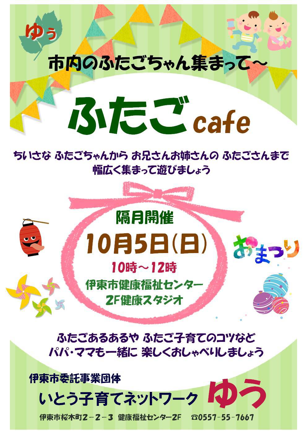 10月5日㈰、ふたごカフェはいつもより早い開催となります。
