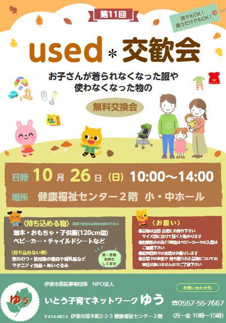 お子さんが着られなくなった服や使わなくなった物と、お子さんに合う物と交換。貰うだけでもOK!