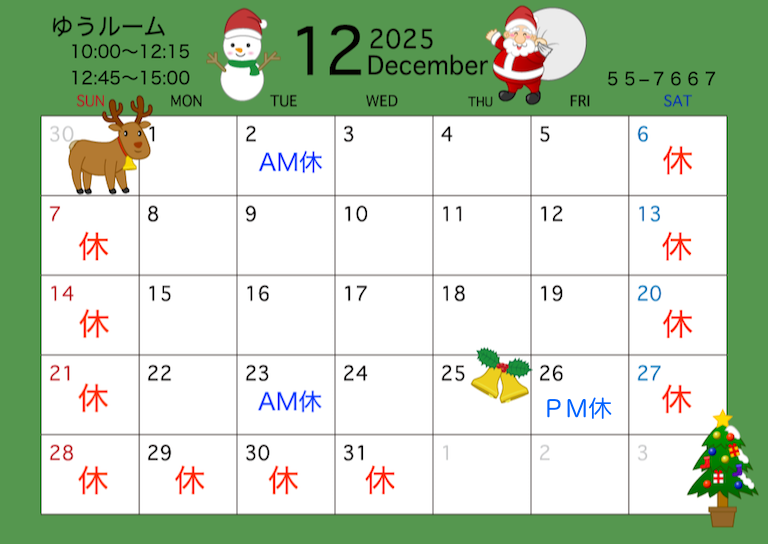 16日㈫ クリスマス会です。ママたちの情報交換もしましょうね。
